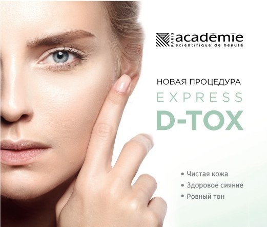Глубокое очищение – лучшее решение для возвращения здорового цвета лица и омоложения кожи. Учитывая загрязнение окружающей среды, безумный ритм большого города и неправильный образ жизни, который сказывается на красоте кожи, специалисты лаборатории Academie Scientifique de Beaute разработали салонную процедуру «Express D-Tox» Процедура «Express D-Tox» всего за 30 минут удаляет загрязнения, токсины, восстанавливает себорегуляцию сальных желёз и гидролипидный баланс кожи. Процедура проводится в 3 этапа: 1. Глубокое очищение Очищающий крем «Бархат», благодаря своей уникальной текстуре, удаляет глубокие загрязнения, мягко очищает и отбеливает кожу, не повреждая её. 2. Эксфолиация Баф-крем бережно отшелушивает омертвевшие клетки кожи, очищает поры и улучшает цвет лица. 3. Детокс Двухфазная детокс-маска мягко очищает кожу, улучшает цвет лица, обладает детокс-эффектом. Активный ингредиент, входящий в состав каждого из трех средств – морские олигопротеины. Они стимулируют естественные функции кожи, выравнивают и улучшают цвет лица, а также обладают детокс-эффектом. Результат заметен после первой процедуры и в течение последующих недель💚