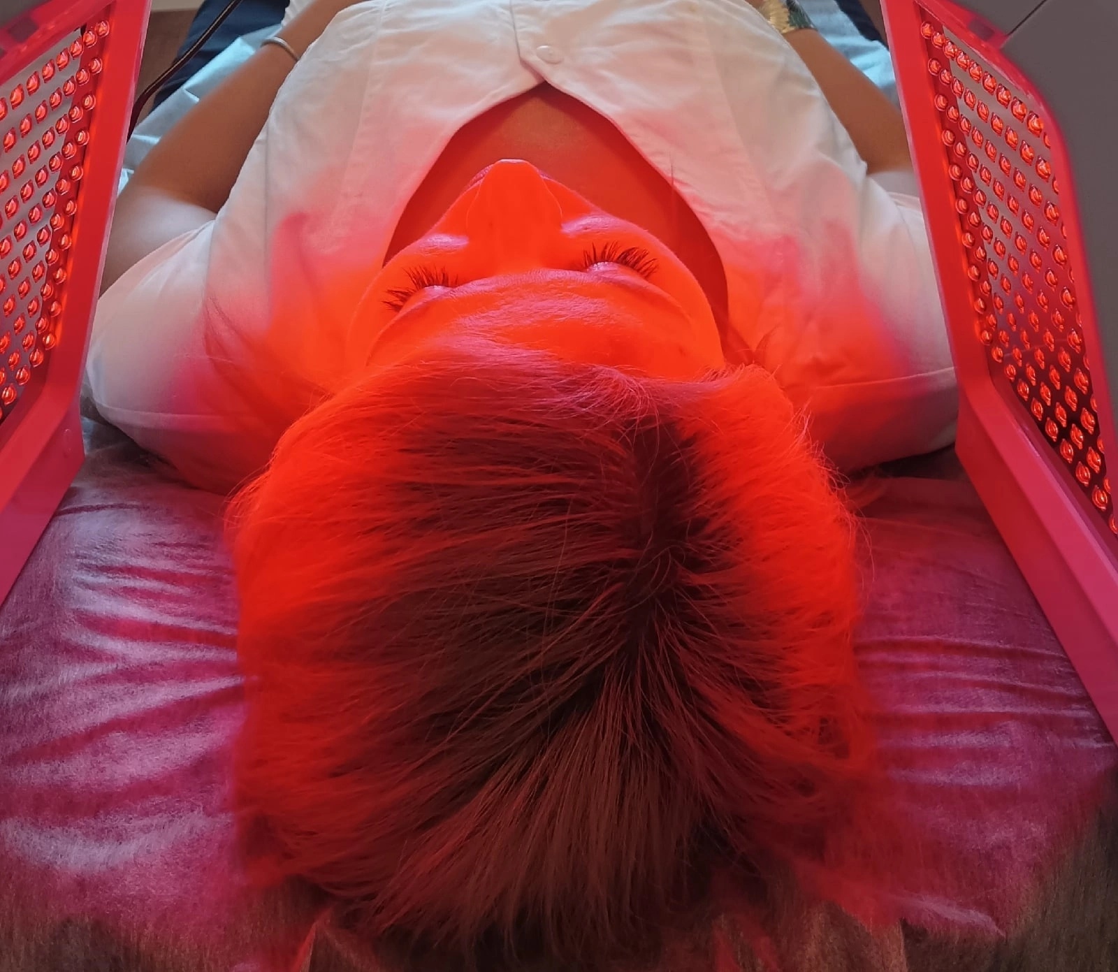 Это воздействие на кожу, основанное на теории современной медицины. При этом методе используется светодиодный источник света в сочетании с фоточувствительных косметикой или лекарственными средствами, предназначенными для лечения различных проблем кожи, таких как угри, розовые угри, покраснение, папулы, пустулы. Кроме того, LED Фотодинамическая терапия, в качестве нового метода косметической технологии часто используется для ухода за кожей. Энергия фотона оказывает положительное воздействие на клетки кожи, ускоряется рост клеток, улучшаются выработка коллагена и эластина, способствуют улучшению микроциркуляции крови и улучшают общее состояние кожи. Так же решает такие проблемы с кожей как: старение, провисание, тонкие линии, морщины, расширенные поры, веснушки и пигментация вызванная солнечными ожогами, поствоспалительная и посттравматическая. ВОЗДЕЙСТВИЕ СВЕТОВЫХ ВОЛН Красный спектр (640 нм): для ухода за зрелой кожей, которая нуждается а стимуляции, сужает поры, регулирует выработку кожного сала, улучшает кровообращение, уменьшает покраснение и воспаление, эффективен для пигментных пятен, стимулирует естественную выработку коллагена. Желтый спектр (583 нм): для ухода за жирной и комбинированной кожей, имеет противовоспалительное, антисептическое, антигрибковое действие, обладает лимфодренажным свойством, эффективен для темных кругов вокруг глаз. Зеленый спектр (532 нм): для ухода за раздраженной, чувствительной и склонной к эритеме кожей, эффективен для кожи с сосудистыми изменениями, используется в Anti-Age терапии и после повреждающих процедур, оказывает успокаивающее действие, восстанавливает баланс кожи. Синий спектр (432 нм): для ухода за проблемной, воспаленной и раздраженной кожей, оказывает выраженное антибактериальное действие, особенно эффективен против акне, предотвращает вспышки высыпаний в будущем.